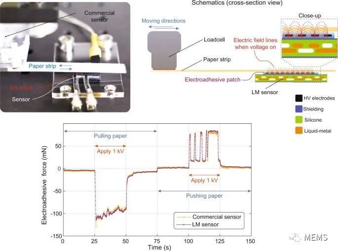 柔性電容式力傳感器可精準(zhǔn)檢測紙條和導(dǎo)電粘合劑表面之間的牽引力