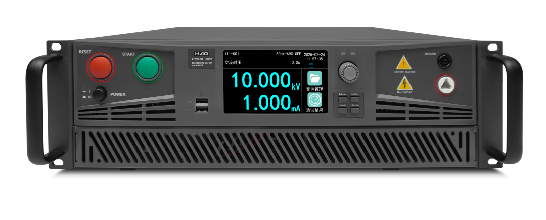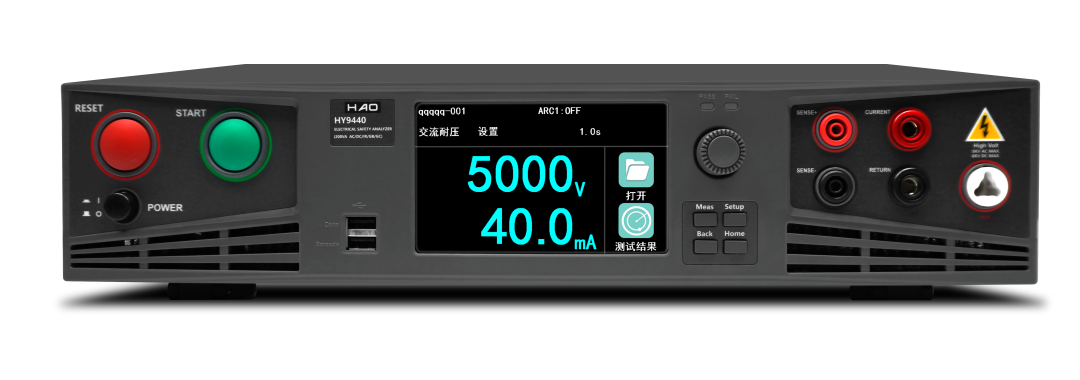 為滿足超高電壓及絕緣材料組件測試需求,HY9470 系列具備超高電壓輸出可達(dá) 20kV, 并具高電流分辨率達(dá)1uA,滿足客戶嚴(yán)苛的測試需求。HY9470 系列共有4個(gè)型號(hào), HY9470:AC(10kV/20mA)、HY9473:AC(20kV/10mA)、HY9472:DC(12kV/10mA)、HY9474:DC(20kV/5mA)。HY9470與HY9473配有開短路檢測功能,可在進(jìn)行高壓測試前,先判斷被測件是否可靠連接,再進(jìn)行高壓測試。HY9472與HY9474配有絕緣阻抗測試功能,絕緣阻抗測試額定輸出:5kV/50GΩ在操作上,搭配5寸多點(diǎn)觸控屏及條形碼掃描鏈接,使用上更簡潔有效率。儀器接口豐富,能適應(yīng)多種不同需要的高安全性和可靠性的自動(dòng)測試系統(tǒng)。