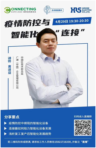 借此ConNECTING EXPO項(xiàng)目組攜手廣瀨電機(jī),深入全國(guó)各地復(fù)工復(fù)產(chǎn)后智能化發(fā)展問(wèn)題,圍繞疫情防控中頻現(xiàn)的智能化設(shè)備、連接器如何助力智能化設(shè)備發(fā)展以及復(fù)工復(fù)產(chǎn)后智能化發(fā)展趨勢(shì)等問(wèn)題特設(shè)【連線(xiàn)展直播間】疫情防控與智能化“連接”,4月29日19:30-20:30,我們將通過(guò)互動(dòng)對(duì)話(huà)的直播形式,為大家揭曉答案。