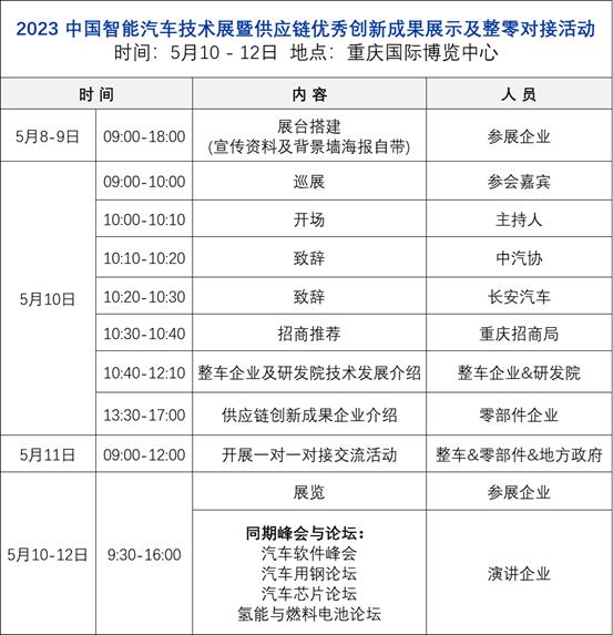 為進一步探討汽車行業(yè)現(xiàn)狀及發(fā)展趨勢,由中國汽車工業(yè)協(xié)會、重慶市招商投資促進局共同主辦,重慶市福祥會展服務(wù)有限公司承辦的“2023中國智能汽車技術(shù)展及整零對接活動”將于2023年5月10日-12日在重慶國際博覽中心舉辦。