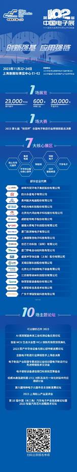 第102屆中國(guó)電子展于2023年11月22日~24日在上海新國(guó)際博覽中心隆重舉行,本屆展會(huì)以"創(chuàng)新強(qiáng)基,應(yīng)用強(qiáng)鏈"為主題,展示區(qū)占地面積達(dá)23,000平方米,來(lái)自全國(guó)各地的600家展商與專業(yè)觀眾將匯聚上海,共同探討新時(shí)期電子行業(yè)發(fā)展的最新態(tài)勢(shì)。本次展會(huì)融合展、會(huì)、賽三位一體,整體發(fā)力,促進(jìn)電子信息領(lǐng)域的技術(shù)創(chuàng)新、應(yīng)用創(chuàng)新、成果轉(zhuǎn)化和產(chǎn)業(yè)鏈協(xié)同。
