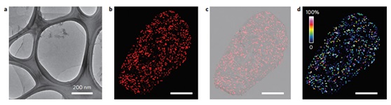 第二問題是如何解決內(nèi)源性小分子干擾的問題。我們發(fā)現(xiàn),改變激光波長比如當選擇355 nm的紫外激光時沒有干擾,這是因為內(nèi)源性小分子對355 nm激光吸收不多。我們把碳納米管通過小鼠尾經(jīng)脈注入其體內(nèi)后,用355 nm激光進行質(zhì)譜成像,得到同純材料非常類似的模式(Pattern)。因此選擇合適的激光波長可解決內(nèi)源性小分子干擾問題,我們成功建立了納米材料在體內(nèi)成像的方法。突破了上述幾大難點后,以后的定量、研究納米材料分布、在亞器官的分布就獲得了較好的實驗的結(jié)果。該工作很快被《Nature Nanotechnology》接受。