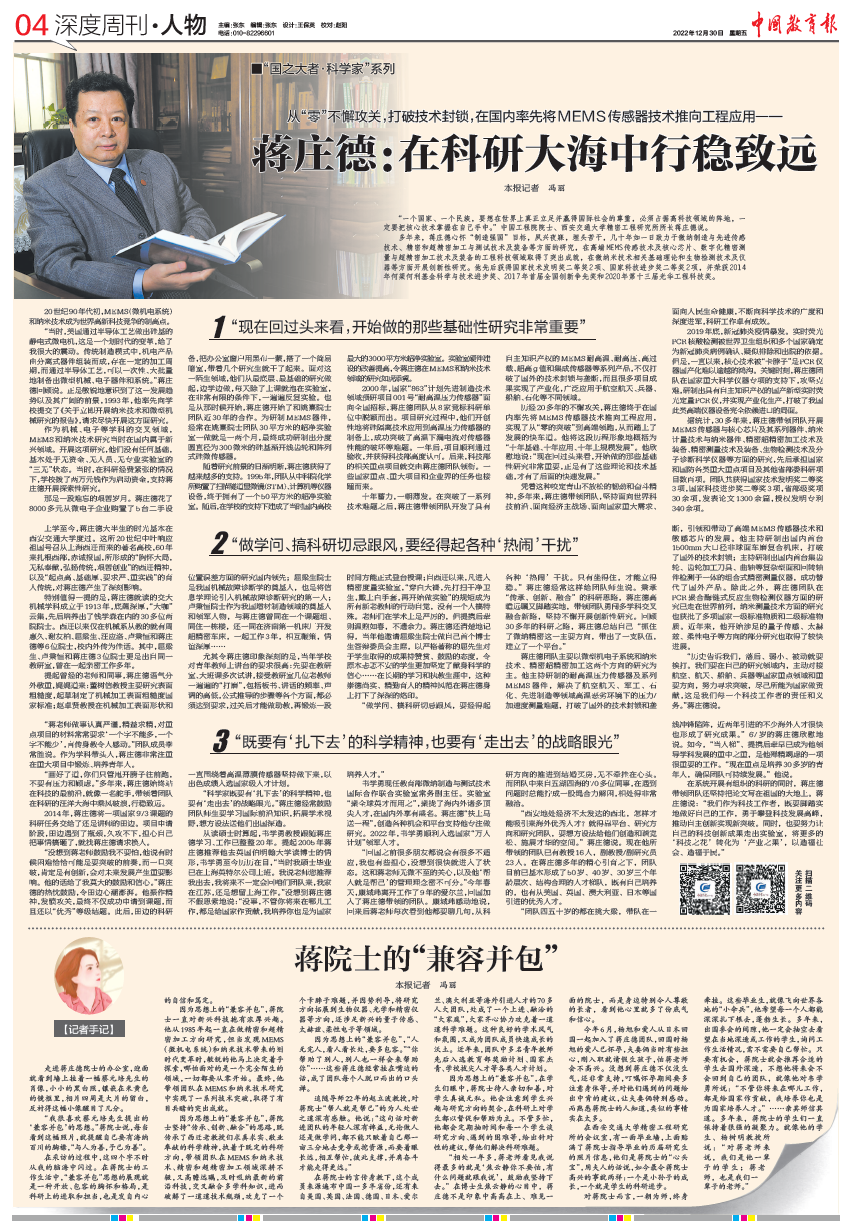 “畫好了道,你們只管甩開膀子往前跑,不要有壓力和顧慮?!倍嗄陙?,蔣莊德始終站在科技的最前沿,就像一名舵手,帶領(lǐng)著團(tuán)隊(duì)在科研的汪洋大海中乘風(fēng)破浪,行穩(wěn)致遠(yuǎn)。