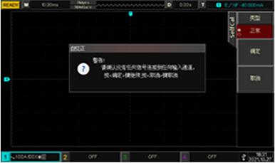②:彈出警告對(duì)話框,"請(qǐng)確認(rèn)沒(méi)有任何信號(hào)接到任何通道",點(diǎn)擊確定鍵