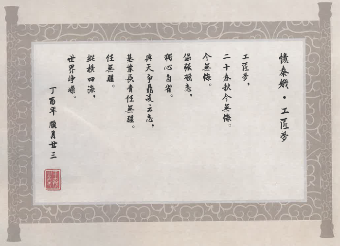 《禮記·大學》中這樣寫道:“物有本末,事由終始,知所先后,則近道矣”,王悅將其作為自身的座右銘,貫穿于生活和工作中,這些均使他多了一份文人雅客的沉穩(wěn)大氣。