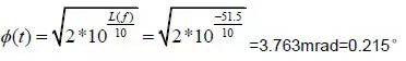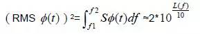 頻率f1到f2的相噪頻譜積分可得到相噪Φ(t)的RMS值的平方(RMSΦ(t))2: