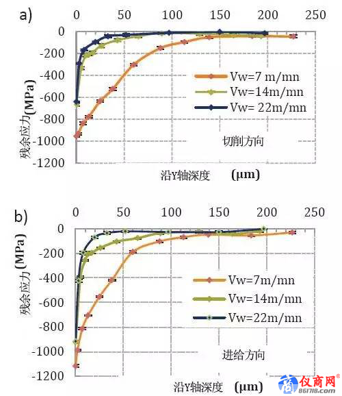 圖九:Vw對磨削表面下的溫度輪廓的影響