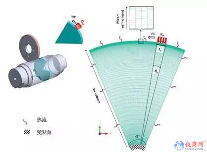 機(jī)械計(jì)算考慮了熱彈塑性機(jī)械性能;求得弱耦合熱機(jī)械計(jì)算。砂輪的影響模擬為速度為Vw沿著表面移動的正常壓力。外加荷載的量級由接觸區(qū)的正常磨削力求得。通過X、Y方向上對位移的限制求得工件底面上的運(yùn)動學(xué)邊界條件。