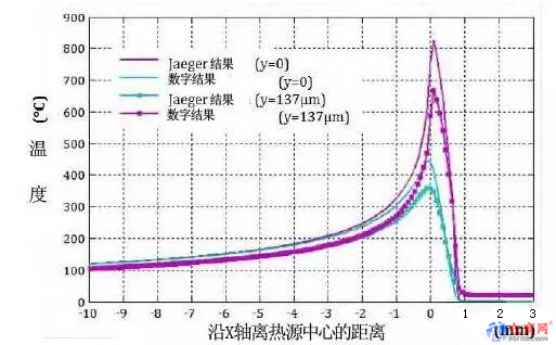 圖8給出了Jaeger分析策略對比,結(jié)果顯示一致性良好;從而證實(shí)了數(shù)字模型。圖中的差異主要是由于FE模型的熱對流引起的熱交換所致,而Jaeger模型則沒有考慮該因素。