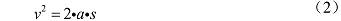 可得,v_x 以減速度 a 從 v 減至 0,駛過的距離 s 與 v 滿足式(2)。