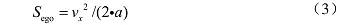 目標車輛從當前位置以減速度 a 進行制動,所需要的制動距離為: