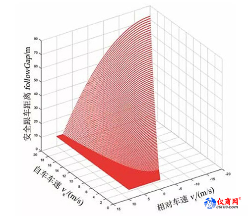 圖 5 安全跟車距離與自車車速和相對車速的關(guān)系