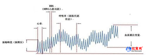 光學心率傳感器可生成測量心率的PPG波形并將該心率數(shù)據(jù)作為基礎(chǔ)生物計量值,但是利用PPG波形可以測量的對象遠不止于此。盡管很難取得和維護精確的PPG測量結(jié)果(我們將在下一篇詳細論述它),但是如果您能夠成功獲得精確的PPG測量結(jié)果,它將發(fā)揮強大的作用。高品質(zhì)PPG信號是當今市場需求的大量生物計量的基礎(chǔ)。圖2是經(jīng)過簡化的PPG信號,該信號代表了多個生物計量的測量結(jié)果。
