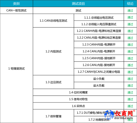 表2 CAN一致性測試內(nèi)容(節(jié)選)