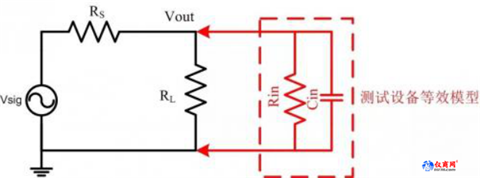而當(dāng)采用示波器進(jìn)行測(cè)量時(shí),由于示波器的輸入電阻和寄生電容,會(huì)使得此時(shí)的等效電路圖如下圖所示: