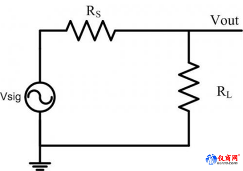 理想情況下,我們希望我們的測(cè)量設(shè)備的阻抗無(wú)窮大,這樣測(cè)試設(shè)備的接入就不會(huì)對(duì)被測(cè)系統(tǒng)產(chǎn)生任何影響,從而保證測(cè)量的真實(shí)性。但是遺憾的是測(cè)量系統(tǒng)不可能有無(wú)窮大的輸入阻抗,而這時(shí)候,測(cè)量設(shè)備的接入,會(huì)對(duì)被測(cè)系統(tǒng)產(chǎn)生什么影響呢?假設(shè)被測(cè)試系統(tǒng)如下圖所示。