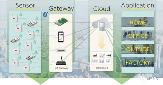 歐姆龍多合一環(huán)境傳感器可以集成到許多物聯(lián)網(wǎng)設(shè)備中,例如智能手機(jī)、電腦主板、路由器、物聯(lián)網(wǎng)網(wǎng)關(guān)等。在傳感器信標(biāo)模式下,多合一環(huán)境傳感器檢測(cè)的數(shù)據(jù)經(jīng)過(guò)網(wǎng)關(guān)設(shè)備傳送至云端,最后再反饋給用戶。用戶還將根據(jù)每個(gè)細(xì)分領(lǐng)域的特定應(yīng)用對(duì)設(shè)備進(jìn)行配置。傳感器數(shù)據(jù)也能通過(guò)智能手機(jī)收集,然后存儲(chǔ)在云端,用戶可遠(yuǎn)程訪問(wèn)環(huán)境數(shù)據(jù)。