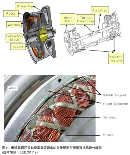 圖11 車輪輪輞和電動發(fā)電機裝置中的直接驅(qū)動型無刷直流馬達分解圖