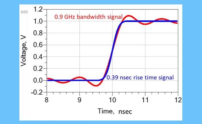 上圖中繪制的數(shù)據(jù)點(diǎn)顯示了基于數(shù)值實(shí)驗(yàn)的純經(jīng)驗(yàn)關(guān)系,該實(shí)驗(yàn)明確定義了重現(xiàn)特定上升時(shí)間所需的最高頻率。上升時(shí)間帶寬積的值在很大程度上取決于上升沿的精確形狀。