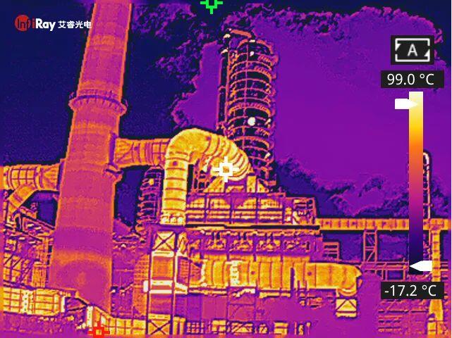 1、裂解分餾塔積焦:用紅外熱像儀測量塔底積焦時外壁熱像特征可判定塔內(nèi)各處積焦程度,并根據(jù)結(jié)果指導(dǎo)工藝操調(diào)、確定最佳運行方案