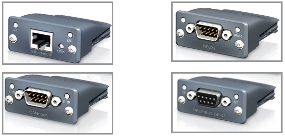 對(duì)于計(jì)算機(jī)或遠(yuǎn)程控制,您有多種選擇,例如以太網(wǎng)、USB、EtherCAT、ProfiNET、ProfiBUS、CAN、CANOpen、Modbus、Devicenet 和 RS232 接口。接口的選擇取決于許多不同的因素,包括您公司常用的接口、所需的數(shù)據(jù)傳輸速率等等。有了 EA “Anybus” 模塊,只需一把螺絲刀就可以在幾分鐘內(nèi)輕松切換通信協(xié)議。