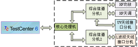 TestCenter使用TCP通信插件與第三方軟件進行通信的意義是實現(xiàn)與專用模擬器和被測設備的網(wǎng)絡通信,第三方軟件可以是被測設備駐機軟件,也可以是被測設備模擬仿真軟件。下圖為TestCenter在某被測設備測試項目中應用案例示意圖,被測設備的各模塊單元通過核心處理機進行控制,核心處理機則提供網(wǎng)絡接口與TestCenter連接,TestCenter通過不同的通信協(xié)議與核心處理機進行交互,從而實現(xiàn)對整個被測設備系統(tǒng)的通信控制。