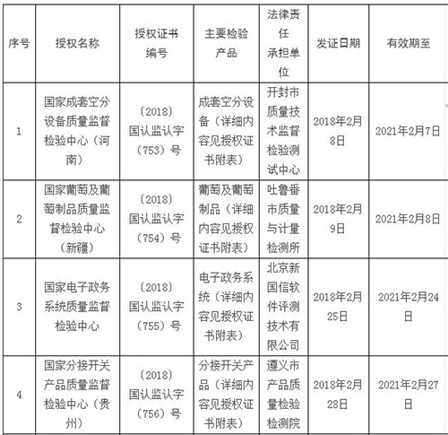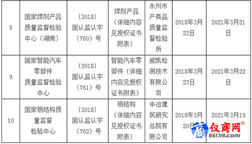 根據(jù)《中華人民共和國標準化法》、《中華人民共和國產(chǎn)品質(zhì)量法》、《中華人民共和國認證認可條例》及相關(guān)規(guī)定,經(jīng)審查,國家認監(jiān)委決定對10家符合法定要求的國家產(chǎn)品質(zhì)量監(jiān)督檢驗中心予以授權(quán)。