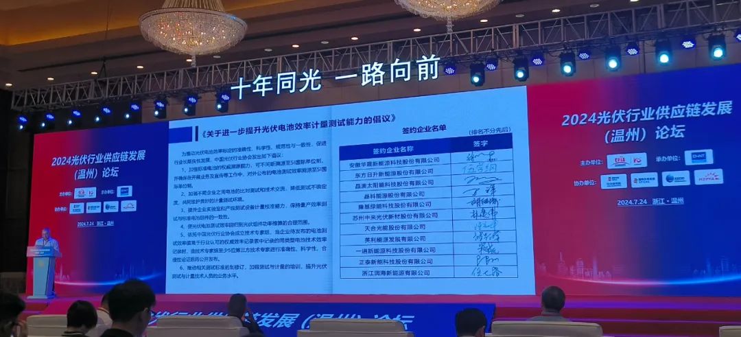 7月24日,在2024光伏行業(yè)供應(yīng)鏈發(fā)展(溫州)論壇上,中國(guó)光伏行業(yè)協(xié)會(huì)發(fā)布了《關(guān)于進(jìn)一步提升光伏電池效率計(jì)量測(cè)試能力的倡議》。