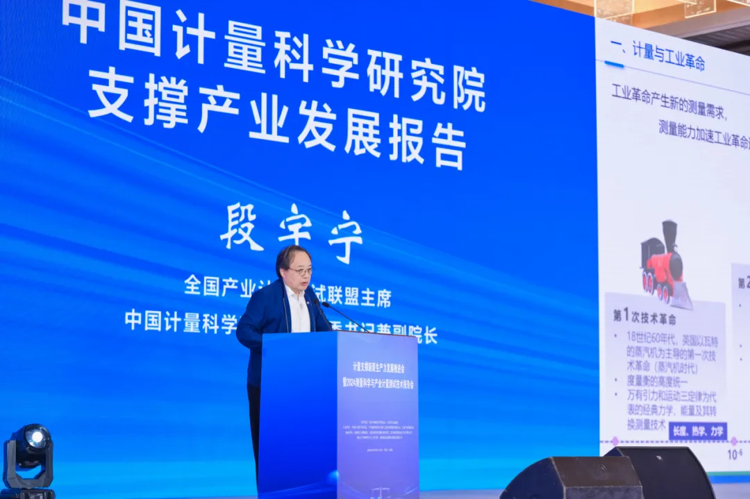 全國產(chǎn)業(yè)計(jì)量測試聯(lián)盟主席、中國計(jì)量院原黨委書記兼副院長段宇寧作專題報(bào)告