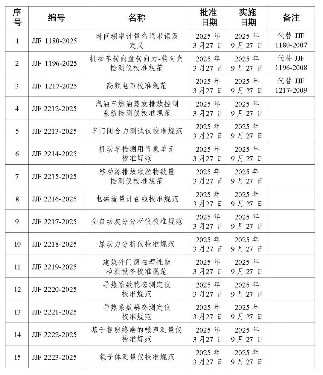 《時間頻率計量名詞術(shù)語及定義》等39項國家計量技術(shù)規(guī)范