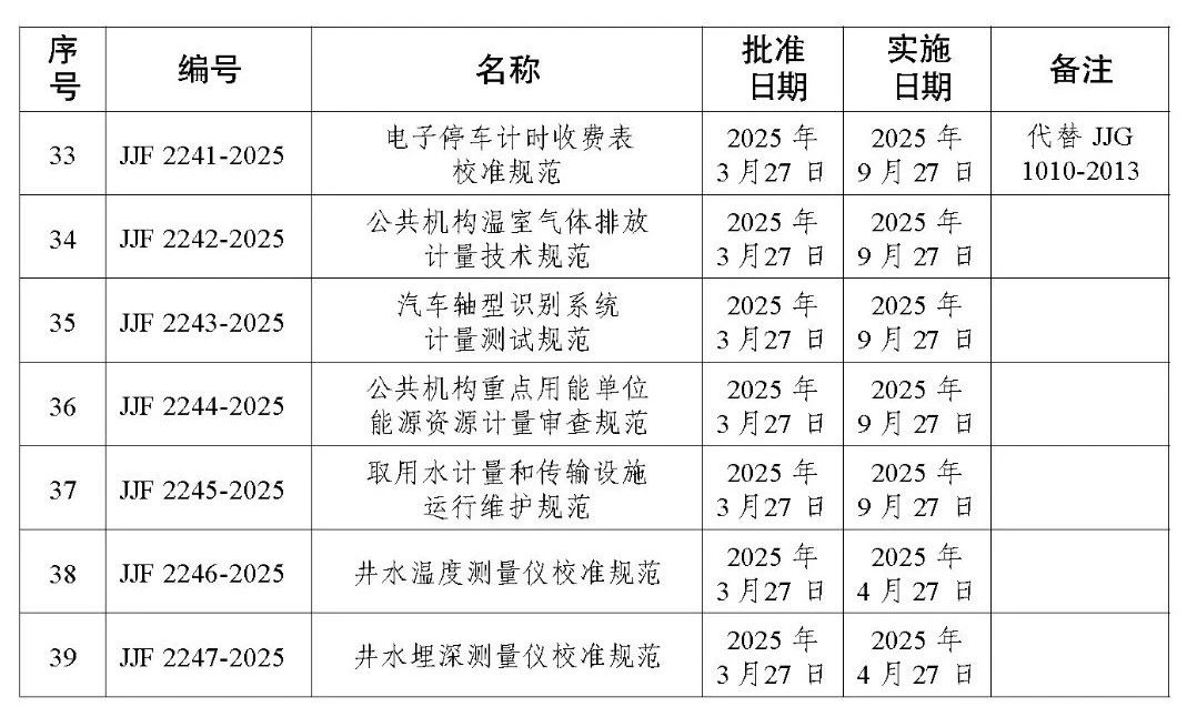 近日,市場監(jiān)管總局發(fā)布2025年第14號公告,批準發(fā)布《時間頻率計量名詞術(shù)語及定義》等39項國家計量技術(shù)規(guī)范。其中JJF 2246-2025《井水溫度測量儀校準規(guī)范》、JJF 2247-2025《井水埋深測量儀校準規(guī)范》將于2025年4月27日實施,JJF 1180-2025《時間頻率計量名詞術(shù)語及定義》等37項自2025年9月27日實施。