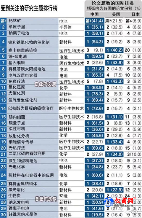 日媒注意到,從此次調(diào)查可以看出,中國占據(jù)優(yōu)勢(shì)的研究主題與“中國制造2025”提出的重點(diǎn)領(lǐng)域相吻合。