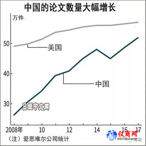 而中國在2004年至2006年僅占8.0%,低于日本的8.6%。另據(jù)愛思唯爾公司數(shù)據(jù)統(tǒng)計(jì),2017年中國論文數(shù)約為51萬篇,較5年前相比增長(zhǎng)27%。美國為56萬篇,對(duì)比5年前僅增長(zhǎng)5%。