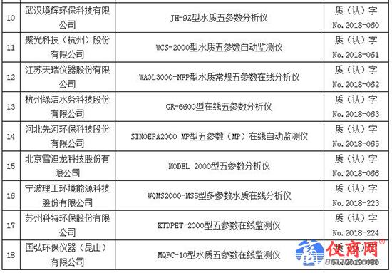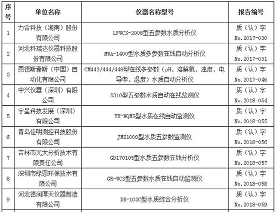 五參數(shù)水質(zhì)在線自動(dòng)監(jiān)測(cè)儀適用性檢測(cè)合格名錄(截至2019年6月30日)