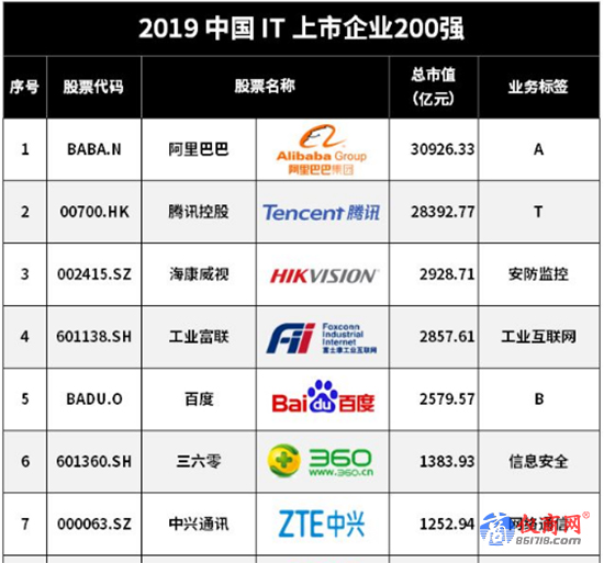 最近,小編看到網(wǎng)上有這樣一份2019中國IT上市企業(yè)200強的榜單。榜單的第一名是B2B行業(yè)大佬阿里巴巴,2至9名分別是騰訊控股、海康威視、工業(yè)富聯(lián)、百度、360、中興通訊、用友網(wǎng)絡(luò)、國電南瑞以及科大訊飛。據(jù)小編觀察,榜單中有7家企業(yè)主營業(yè)務(wù)為科學(xué)儀器或涉及科學(xué)儀器,分別是中興通訊、同方股份、美亞柏科、云賽智聯(lián)、聚光科技、海蘭信和川大智勝。