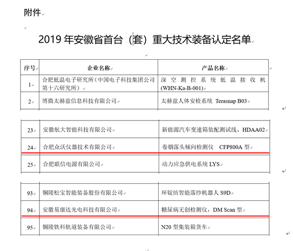 近日,安徽省經(jīng)信廳網(wǎng)站公布了2019年安徽省首臺(套)重大技術(shù)裝備名單。應(yīng)用所光電子中心與安徽易康達光電科技有限公司、合肥眾沃儀器技術(shù)有限公司分別聯(lián)合研發(fā)的“糖尿病無創(chuàng)檢測儀”、“卷煙燃燒錐落頭傾向測試儀”獲省首臺(套)重大技術(shù)裝備認定。