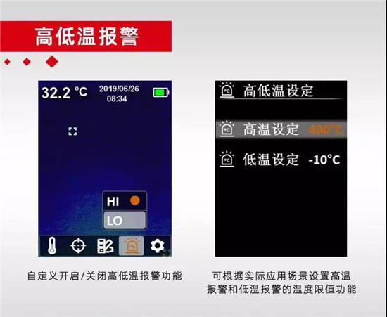 UTi165A紅外熱成像儀可對(duì)區(qū)域內(nèi)的最高溫度/最低溫度進(jìn)行自動(dòng)追蹤,可直接通過觀看設(shè)備分析觀測(cè)每個(gè)人經(jīng)過時(shí)的溫度值。如果在區(qū)域內(nèi)沒有干擾高溫源,人體體表溫度,特別是頭部溫度可作為最高溫度進(jìn)行自動(dòng)追蹤。對(duì)報(bào)警溫度值進(jìn)行設(shè)定,凡是達(dá)到或超過報(bào)警溫度值,測(cè)溫儀將進(jìn)行聲音報(bào)警,以備后續(xù)疫情防控提供數(shù)據(jù)依據(jù)。