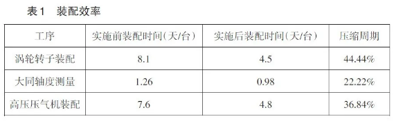 2.裝配效率(見(jiàn)表1)