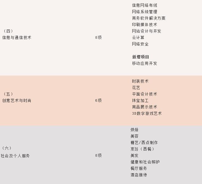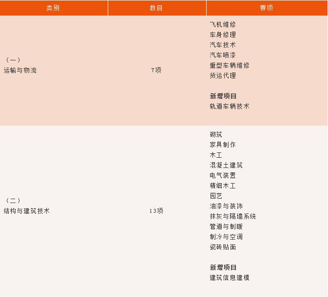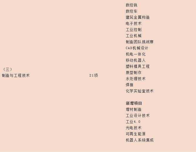 世賽選拔項(xiàng)目(63項(xiàng))