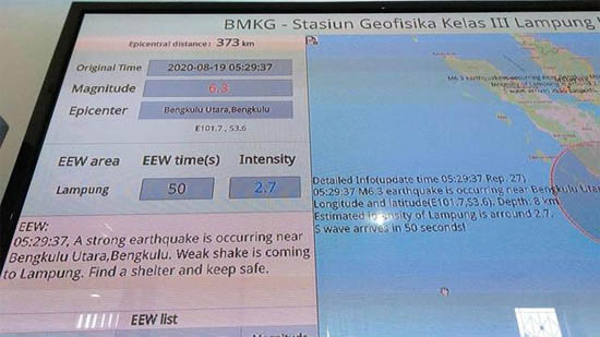 由“成都智造”地震預(yù)警成果支撐的印度尼西亞地震預(yù)警系統(tǒng)成功預(yù)警這兩次地震,安裝在印尼氣象氣候和地球物理局(BMKG)和多個(gè)社區(qū)的地震預(yù)警接收終端發(fā)出預(yù)警。8月19日早晨的兩次強(qiáng)震震中都位于海里,在地震預(yù)警網(wǎng)外。為了進(jìn)一步提升預(yù)警系統(tǒng)能力,減災(zāi)所將與印尼氣象氣候和地球物理局(BMKG)加快推動(dòng)在海島上安裝地震預(yù)警監(jiān)測(cè)傳感器。該系統(tǒng)未來將通過電視、手機(jī)和專用接收終端逐步為覆蓋區(qū)域的民眾和重大工程提供越來越廣泛的地震預(yù)警服務(wù)。