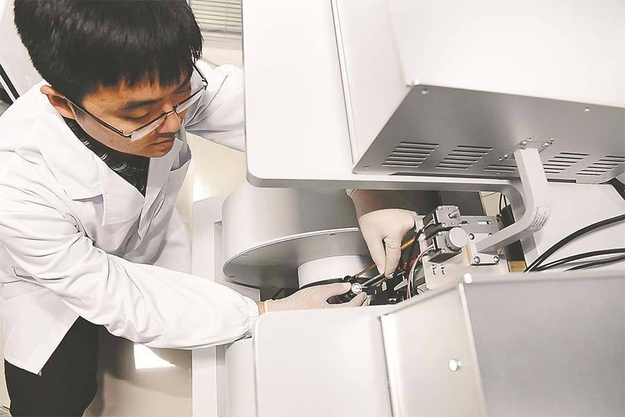 科研人員對(duì)樣品做電子順磁共振測(cè)試。