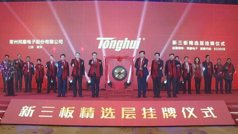 2021年1月11日上午,常州同惠電子股份有限公司新三板精選層掛牌儀式在常州高新區(qū)舉行,常州市領(lǐng)導(dǎo)周斌、梁一波出席掛牌儀式。同惠電子也成為了2021年常州市首家登陸資本市場的企業(yè),并實(shí)現(xiàn)了常州高新區(qū)新三板精選層的新突破。