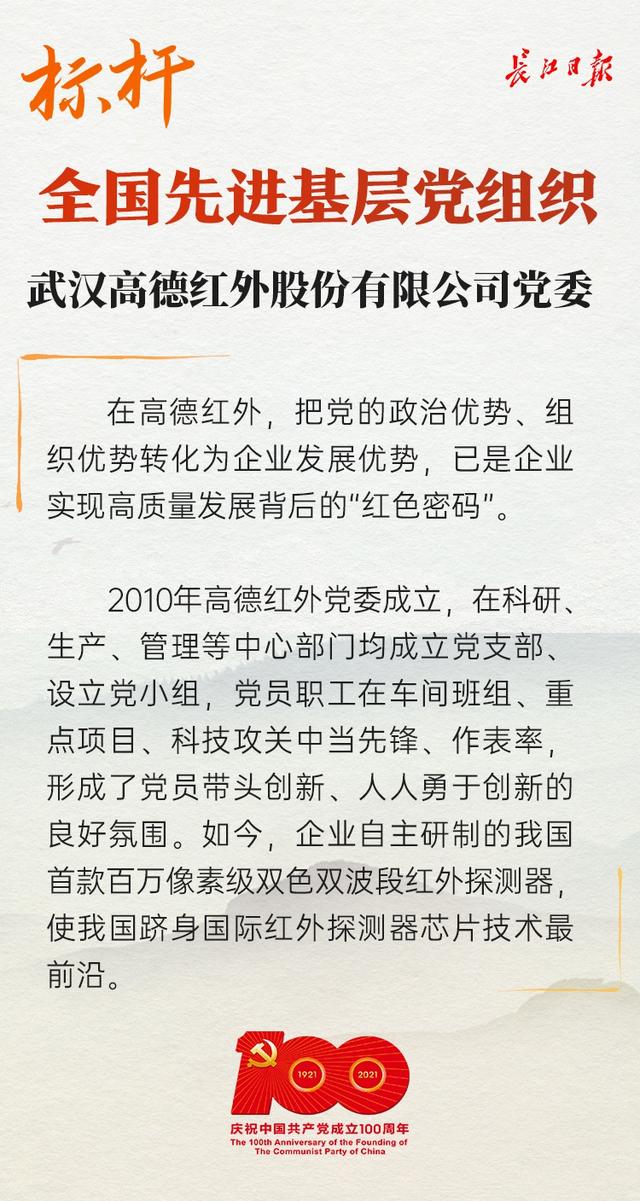 硬核企業(yè)政治硬,一顆紅心鑄紅“芯”?!霸?a href="http://tocape.cn/zixun/search.php?kw=%E9%AB%98%E5%BE%B7%E7%BA%A2%E5%A4%96" target="_blank">高德紅外,把黨的政治優(yōu)勢、組織優(yōu)勢轉(zhuǎn)化為企業(yè)發(fā)展優(yōu)勢,已是企業(yè)實現(xiàn)高質(zhì)量發(fā)展背后的‘紅色密碼’。”武漢高德紅外股份有限公司(以下簡稱“高德紅外”)黨委書記、董事長黃立說,日前,高德紅外黨委作為榮獲“全國先進(jìn)基層黨組織”榮譽(yù)的民營企業(yè)黨委代表赴京受獎。