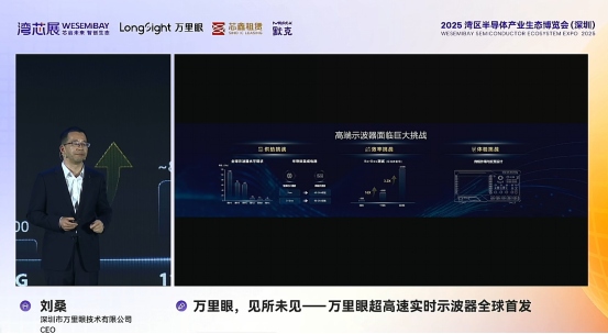 深圳市萬里眼技術(shù)有限公司CEO 劉桑在90GHz超高速示波器發(fā)布會上也是著重地介紹了本次90GHz超高速示波器集高帶寬、高采樣率和高性能于一體,以高保真快速捕獲和展示波形信號。