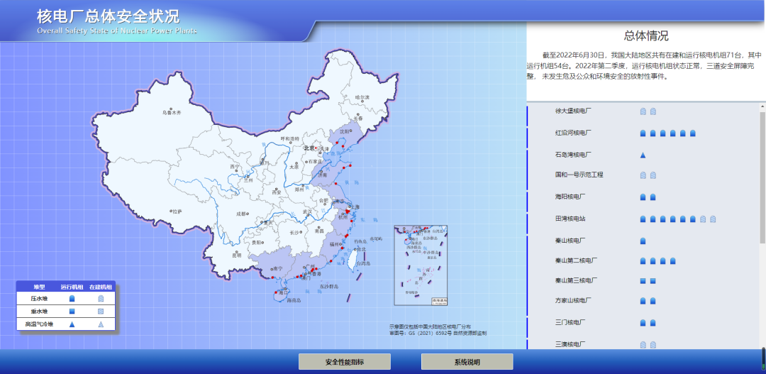 截至2022年6月30日,我國大陸地區(qū)共有在建和運行核電機組71臺,其中運行機組54臺。(圖:國家核安全局)