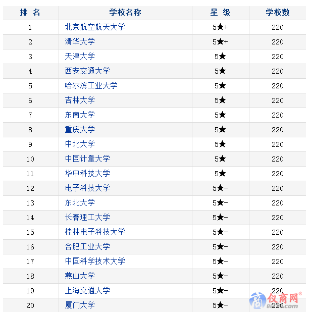 3.全國儀器類專業(yè)高校排行榜