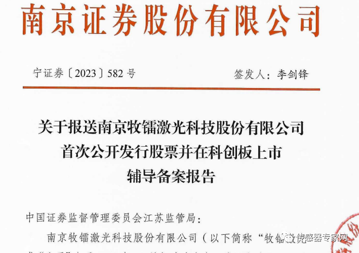 據(jù)傳感器專家網(wǎng)獲悉,12月2日,證監(jiān)會(huì)披露了南京證券關(guān)于報(bào)送南京牧鐳激光科技股份有限公司首次公開發(fā)行股票并在科創(chuàng)板上市輔導(dǎo)備案報(bào)告。