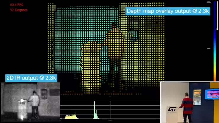 這款新傳感器的主要特點(diǎn)是真正實(shí)現(xiàn)一體化集成,所需的一切都在緊湊型傳感器內(nèi),它可以以每秒60幀的速度(據(jù)稱是市場上最快的)傳輸經(jīng)處理后的二維圖像、深度數(shù)據(jù)和置信度圖。另外還有一種原始直方圖輸出模式,可用于輸入人工智能(AI)系統(tǒng)以進(jìn)行進(jìn)一步處理。目前,VL53L9已向“主要客戶”提供樣品,計劃于2025年初全面上市。