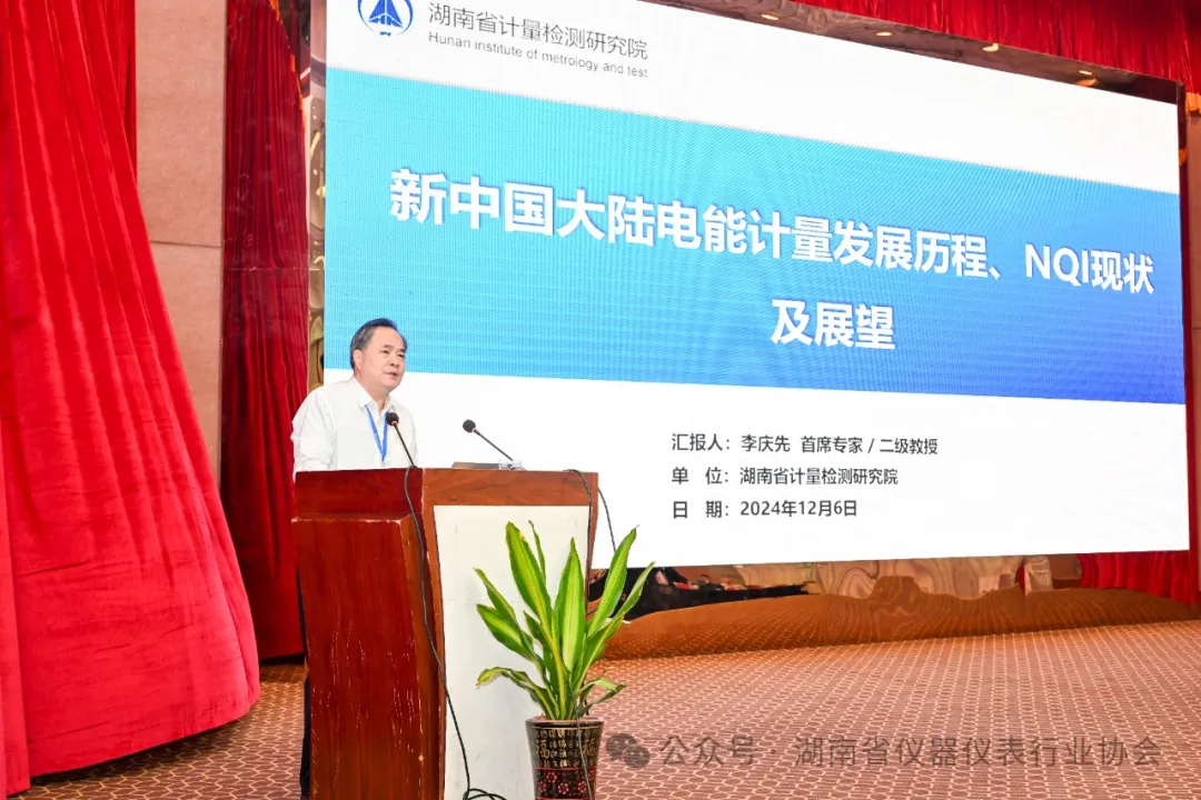 湖南省計量檢測研究院原副院長、首席專家、二級教授李慶先作《新中國大陸電能計量發(fā)展歷程、NQI現(xiàn)狀及展望》專題報告