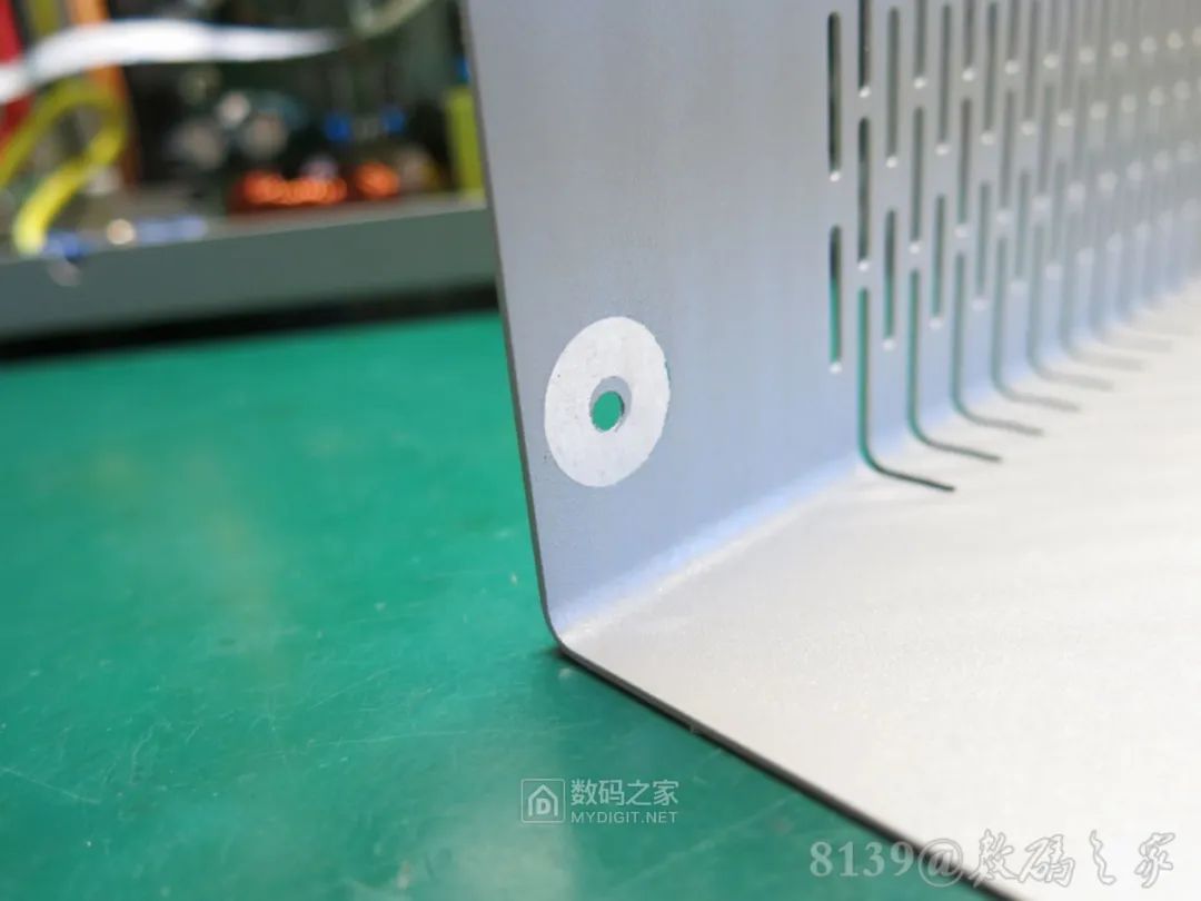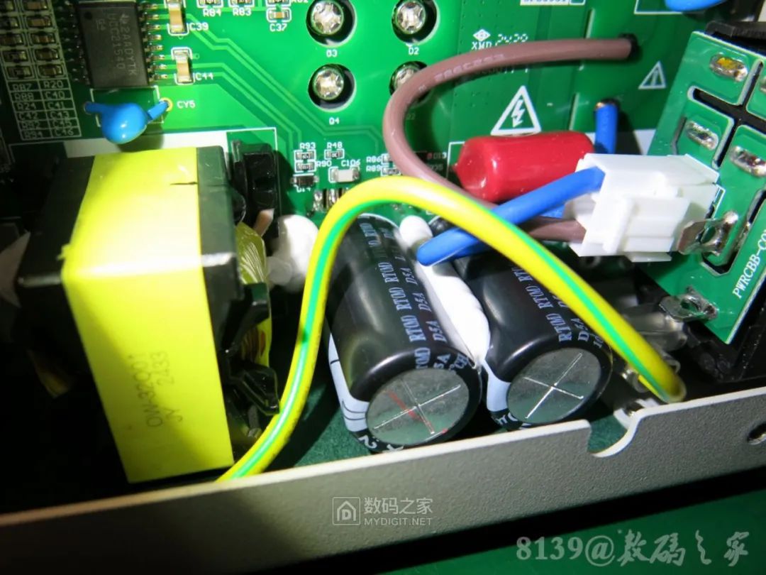 接下來是重頭戲,拆開看一下電源的內(nèi)部,取下外殼之后,只見這邊有一個巨大的散熱片。